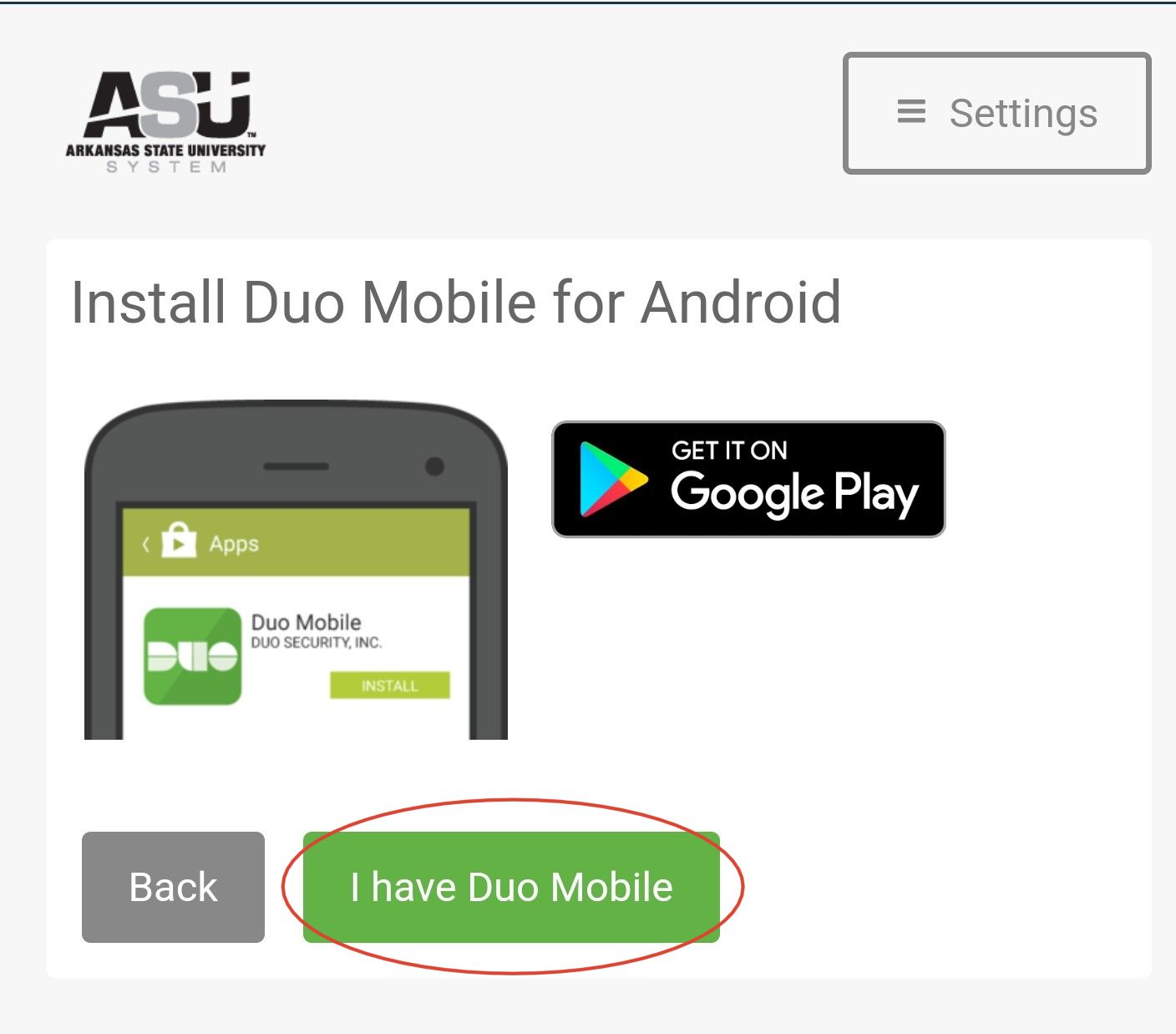 Open Settings in Android OS. Duo Mobile App Android. If the device does not have Google Play Services Duo Push.
